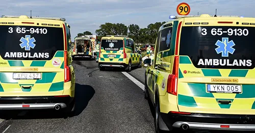 Flera skadade personer transporterades med ambulans till närliggande sjukhus för vård. Deras tillstånd har inte offentliggjorts, men det rapporteras att åtta personer blev förda till sjukhus, varav några är allvarligt skadade. Räddningstjänsten använde både skärande verktyg och annan utrustning för att hjälpa de inblandade och säkerställa att ingen fortfarande var kvar i de skadade bilarna.TrafikpåverkanOlyckan ledde till stora trafikstopp på E22, där myndigheterna stängde av flera körfält för att ge utrymme åt räddningsarbetet. Bilister uppmanades att använda alternativa rutter för att undvika förseningar. Trafikverket meddelade att vägförhållandena kan påverkas under en tid framöver, medan olyckan utreds.Polisutredning