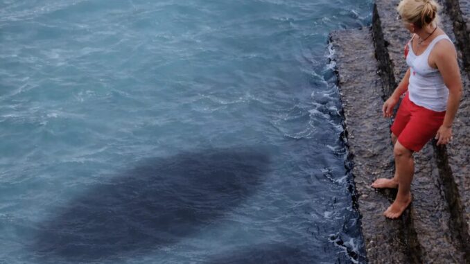 Innan hon gick ner till vattnet hade kvinnan lagt märke till mörka fläckar under ytan, men de väckte ingen oro. Hon trodde att det var stenar eller koraller.